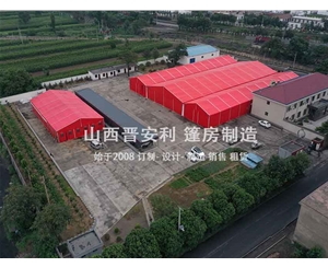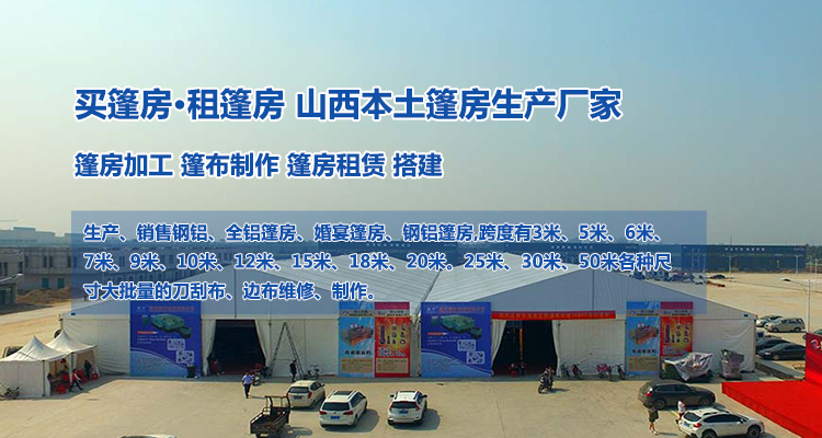 山西晉安利篷房制造有限公司,位于山西省太原市。我們專注設(shè)計(jì)、生產(chǎn)、制造、銷售、租賃各種跨度、尺寸的篷房。根據(jù)用戶要求提供訂制服務(wù)。 我們從一個(gè)小作坊起步,發(fā)展成為篷房、展覽設(shè)備的生產(chǎn)廠家,起初的產(chǎn)品主要用于戶外婚禮、房產(chǎn)奠基促銷、汽車展、服裝展、啤酒節(jié)、音樂(lè)節(jié)等各種展會(huì)、會(huì)展、會(huì)議會(huì)務(wù)活動(dòng),我們以質(zhì)量和服務(wù)贏得了客戶的信任。 此外,我們還為制造業(yè)、物流業(yè)、商品流通業(yè),建設(shè)戶外裝配式店鋪、臨時(shí)倉(cāng)庫(kù),裝配式體育館,臨時(shí)廠房等。 除了生產(chǎn)制造外,我們還維修所有篷房配件,如各種厚度、不同尺寸的頂布、邊布、扣眼釘、拉繩、拉鏈等,凡本公司的產(chǎn)品用戶均可享受篷布免費(fèi)維修。